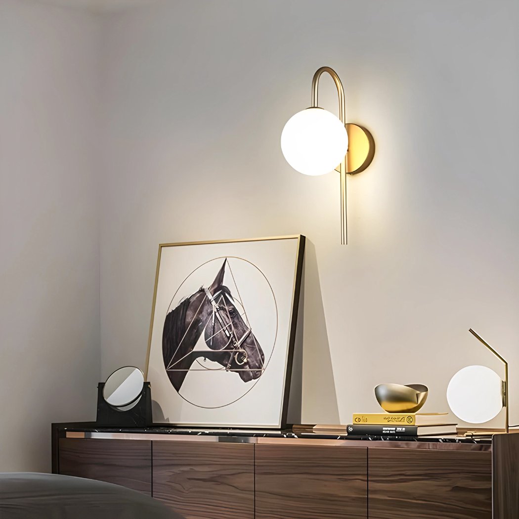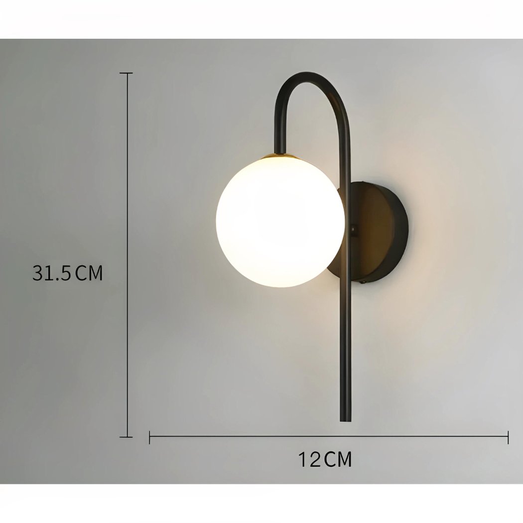 Dotée d'une tige en métal finement courbée offrant une assise robuste, notre applique murale se distingue par son design raffiné. Le globe en verre givré, quant à lui, apporte une touche de grâce et d'élégance à cette création lumineuse.