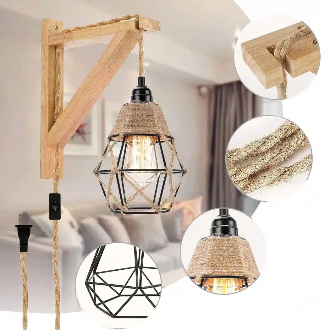 Applique murale filaire avec cadre en bois rétro
