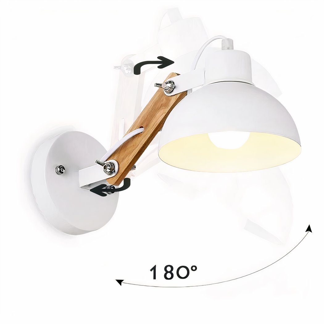 Cette applique murale au design nordique allie élégance et fonctionnalité. Fabriquée en bois et métal, elle se compose d'un socle et d'un abat-jour en métal, ainsi que d'un bras articulé en bois permettant une rotation à 180° pour diriger la lumière selon vos besoins.