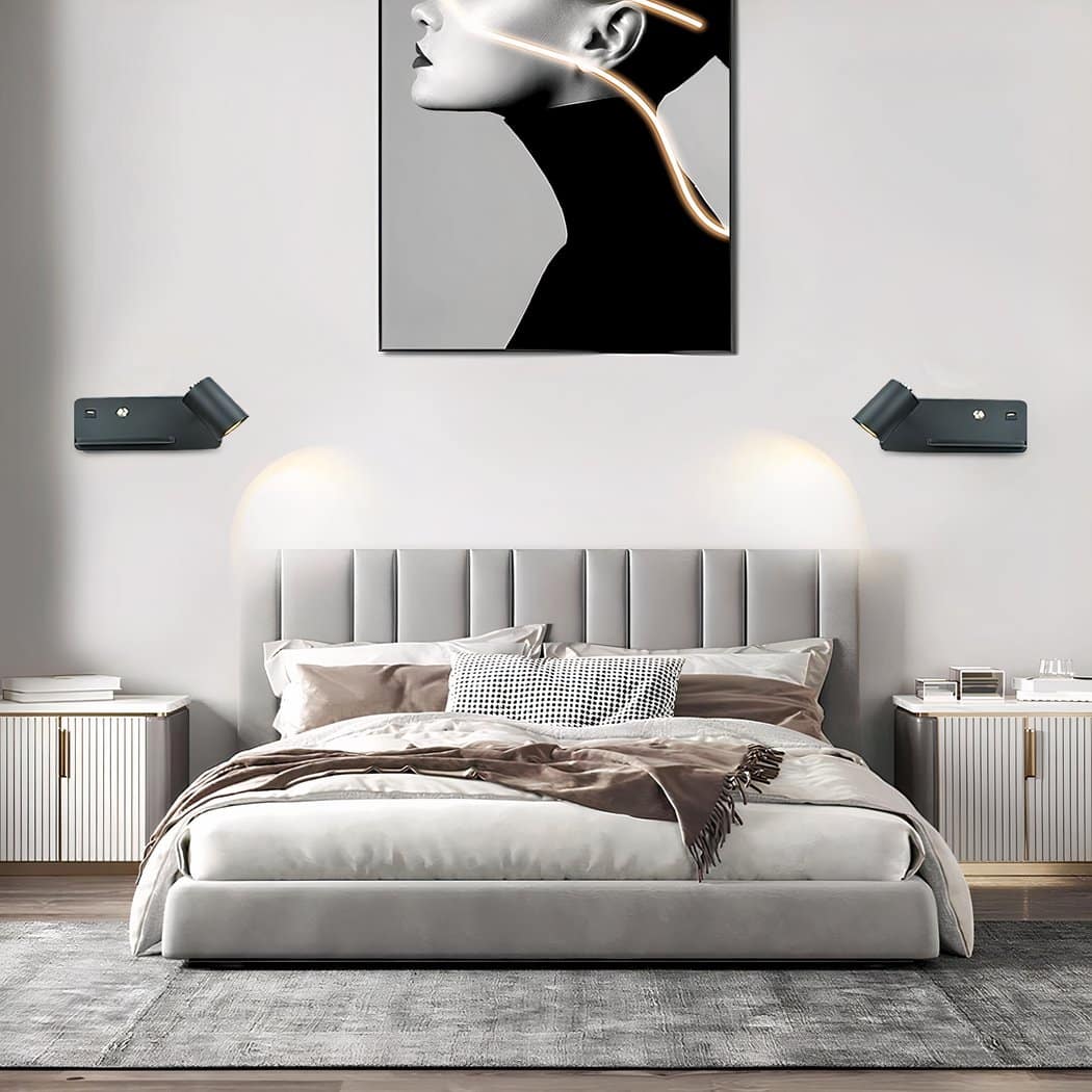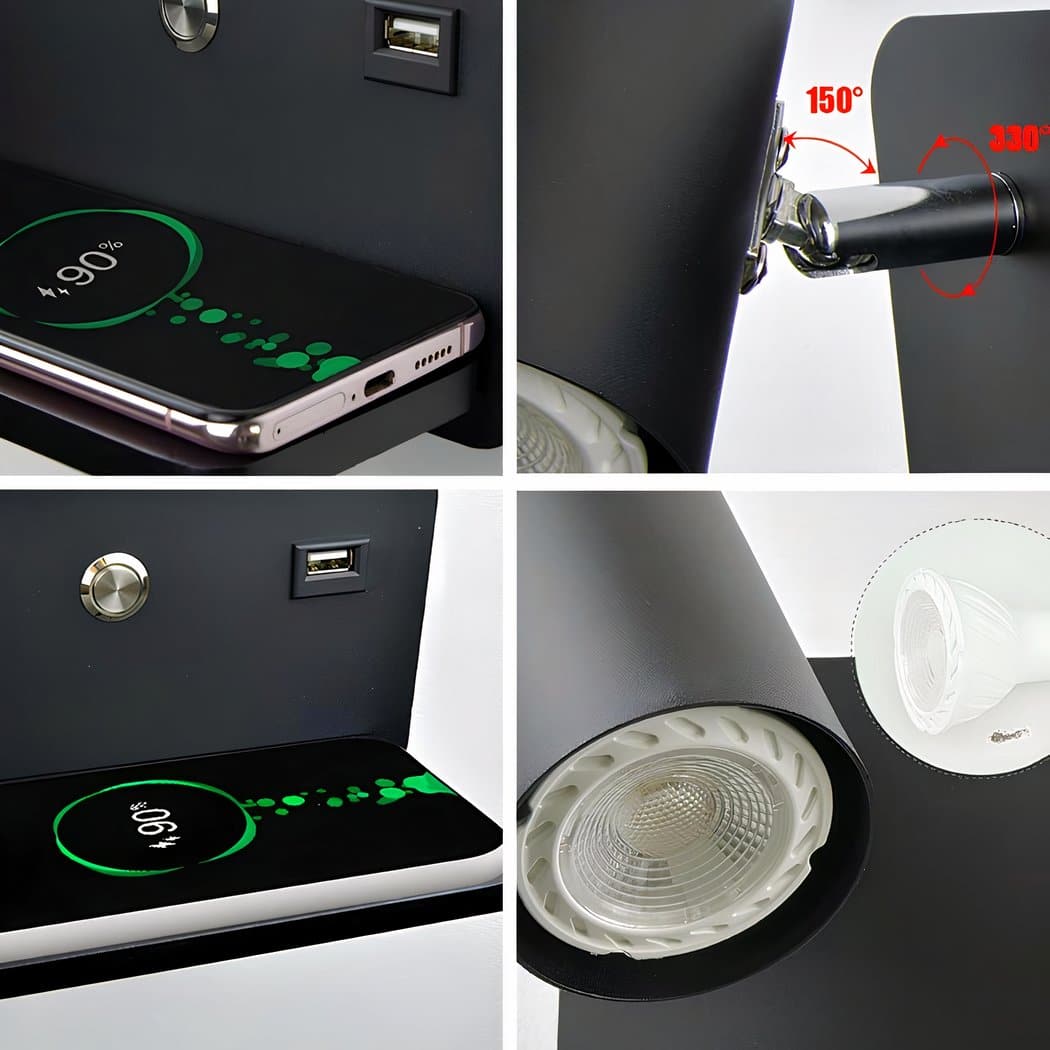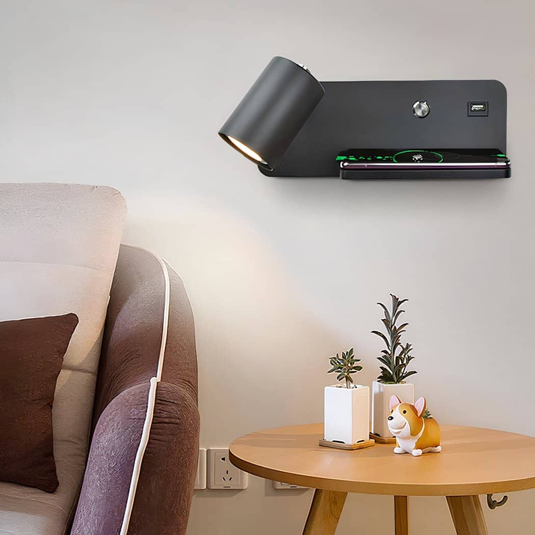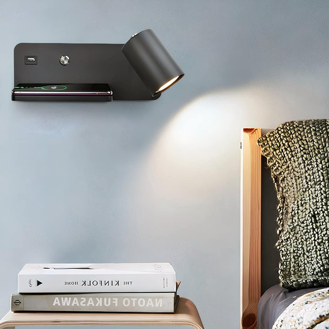 Applique murale liseuse avec port USB et support de charge pour téléphone