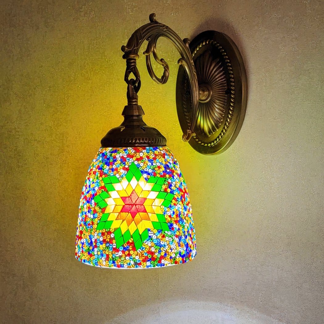Offrez à votre espace de vie une touche d'élégance intemporelle avec notre magnifique applique murale orientale aux motifs fleuris. Sa mosaïque exquise diffuse une lumière douce et enveloppante, révélant des nuances chaudes et vibrantes qui réchauffent instantanément l'ambiance, ses fleurs finement dessinées subliment cette pièce maîtresse de la décoration.