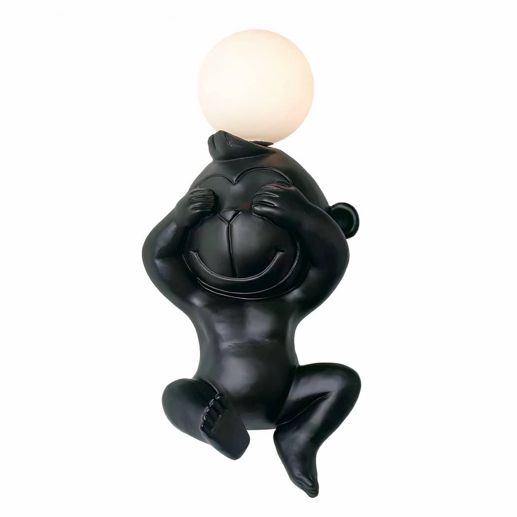 Applique murale noire avec une ampoule sur la tête du singe