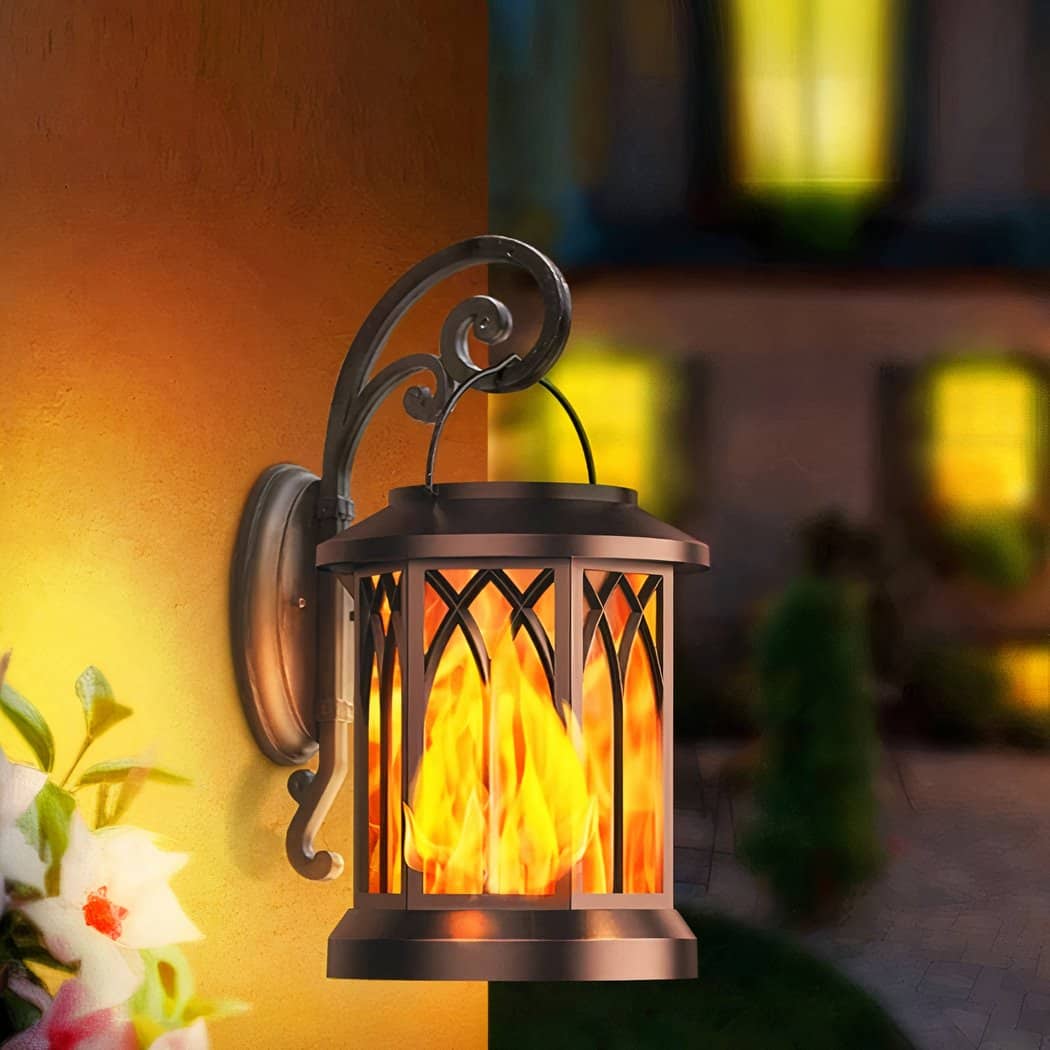 Plongez dans une atmosphère rétro-chic avec notre applique murale effet flammes scintillantes. Son design original, inspiré des lanternes d'autrefois, ajoute une touche de fantaisie à votre espace extérieur.