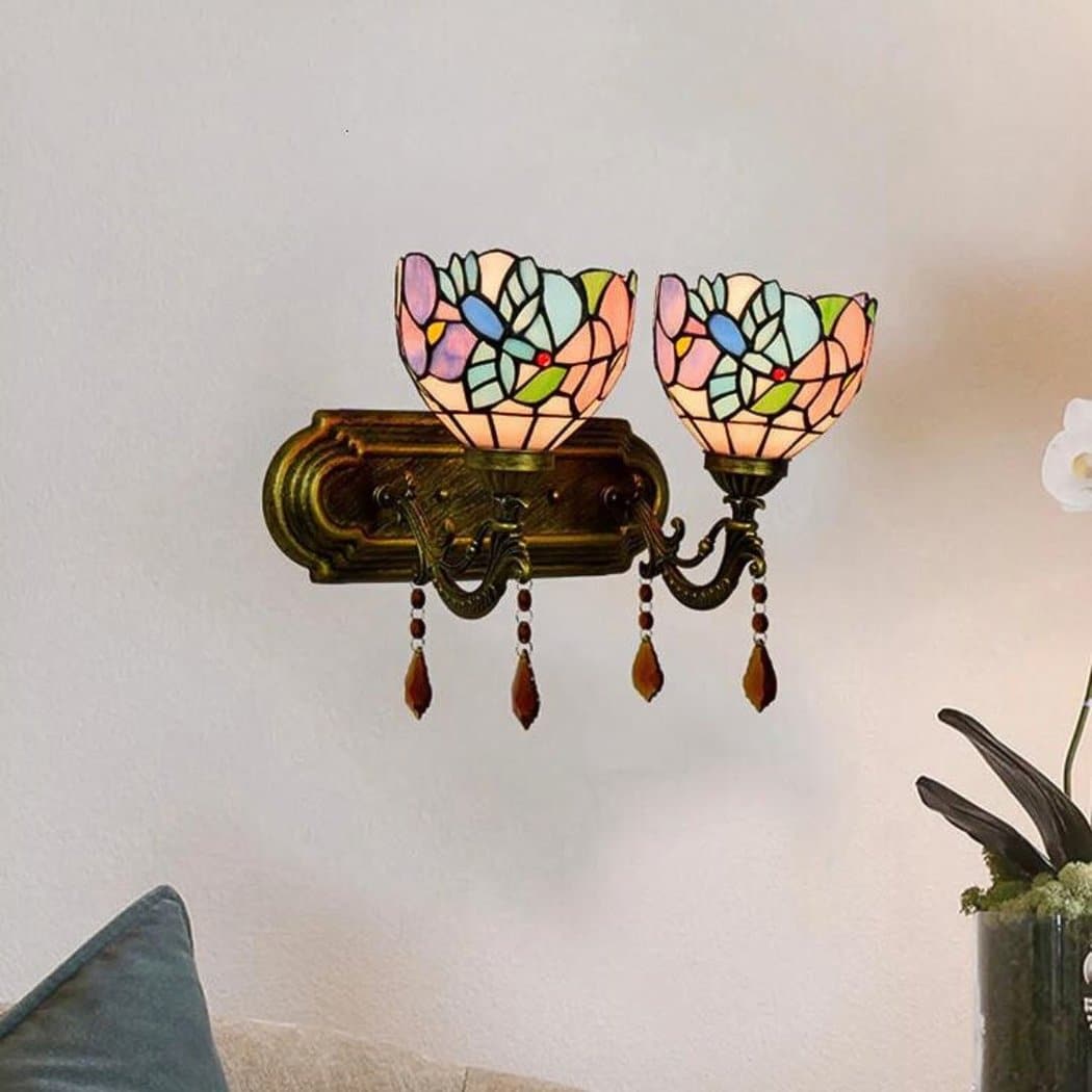 Applique murale de style Tiffany rose et bleue