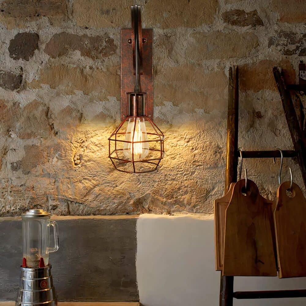 Cette applique murale est un véritable chef-d'œuvre de design qui saura apporter une touche brute et originale à votre intérieur. Sa cage en métal qui sert d'abat jour et sa poulie rappellent les anciennes usines et ateliers, pour un style résolument industriel et vintage.