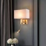 Applique murale en métal doré et tissu avec lampe de lecture