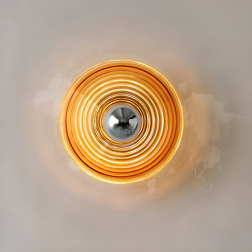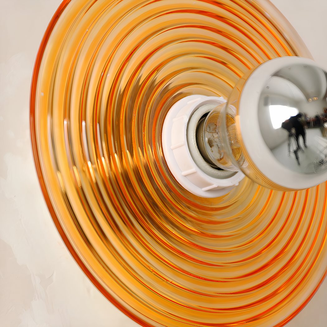 Cette applique murale au design rétro avec son cercle en verre coloré ou transparent, au choix, est un bijou de décoration pour toute pièce souhaitant apporter une touche vintage et colorée à sa décoration.