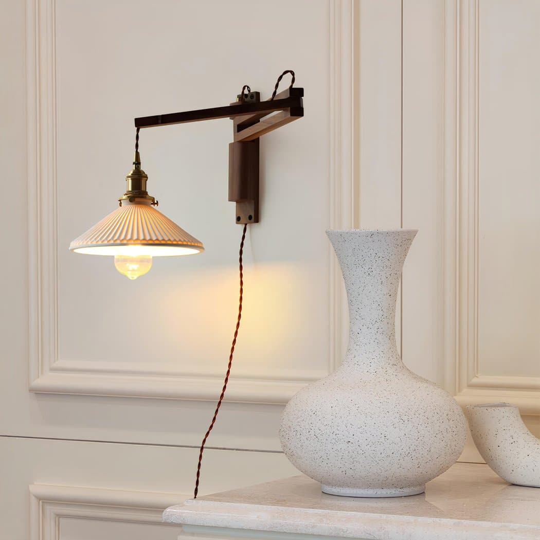 Cette applique murale vintage en céramique avec bras pliable en bois allie élégamment des matériaux naturels : le bois et la céramique. Son bras pliable permet d’ajuster l’éclairage selon vos besoins tout en optimisant l’espace. Suspendue et filaire, elle s’intègre facilement dans votre intérieur pour apporter une touche d’authenticité.